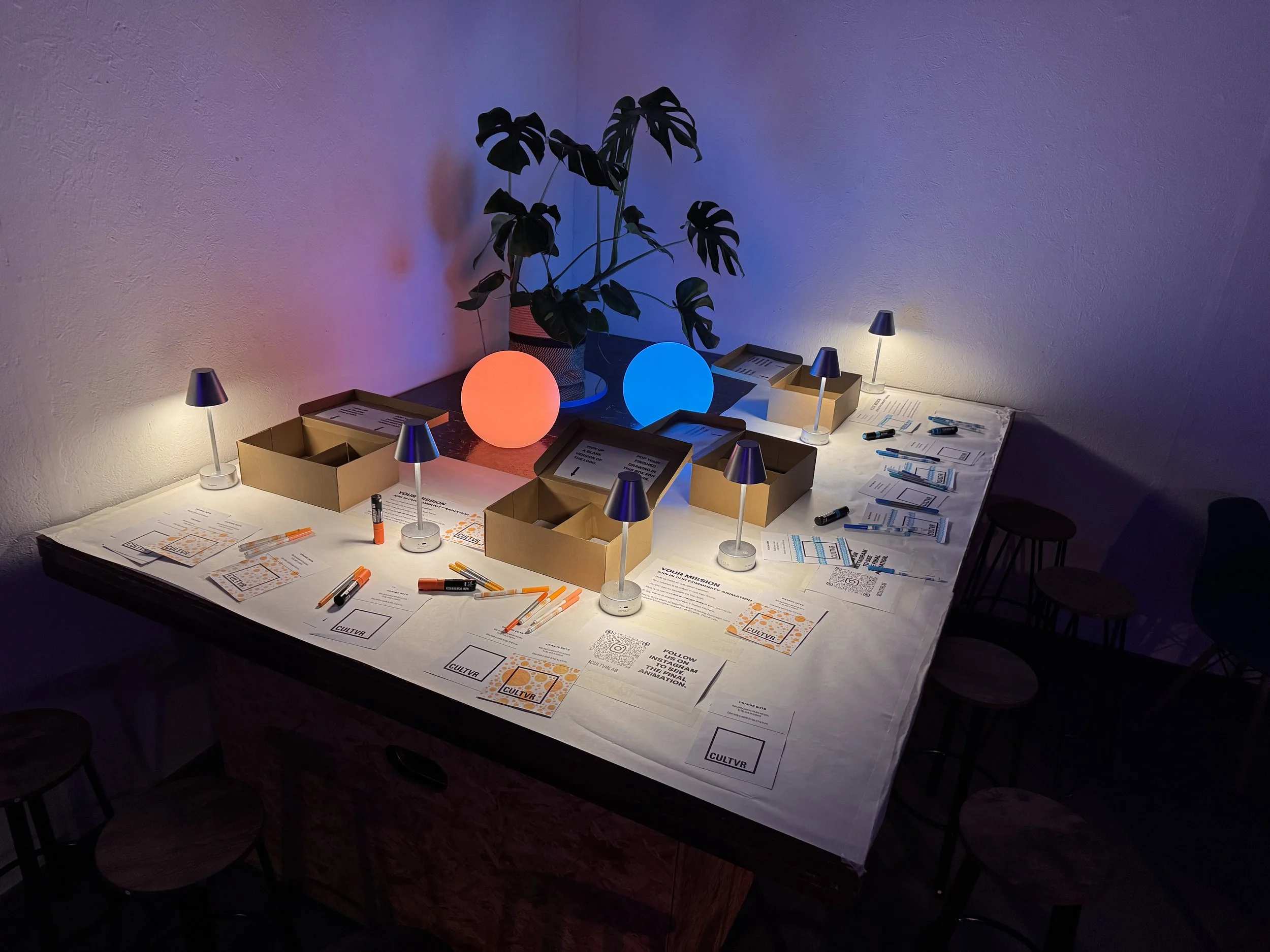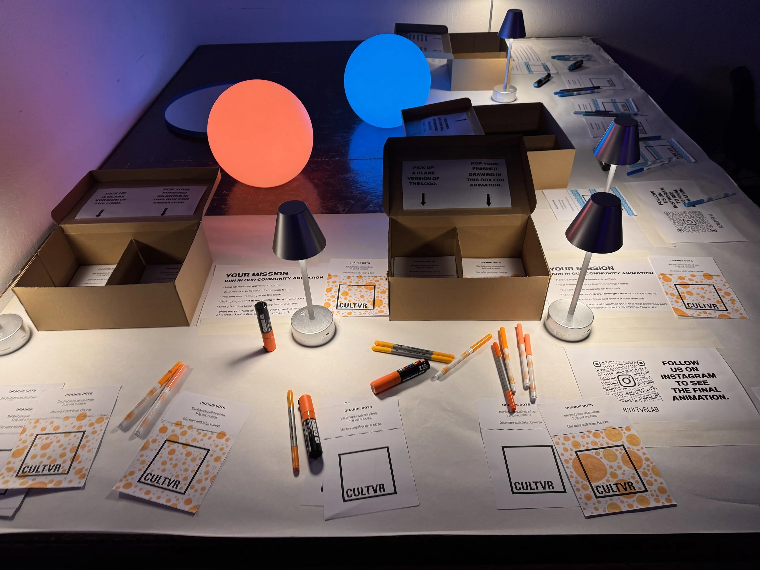 The workshop was designed to work without my presence, so I created a clear set of rules that people could follow on arrival. CULTVR’s Lab is a shared space where the public often sit before a cinema or live XR event, and I felt people would naturally want to play. They were out for the night, open to distraction, and that instinct proved right.